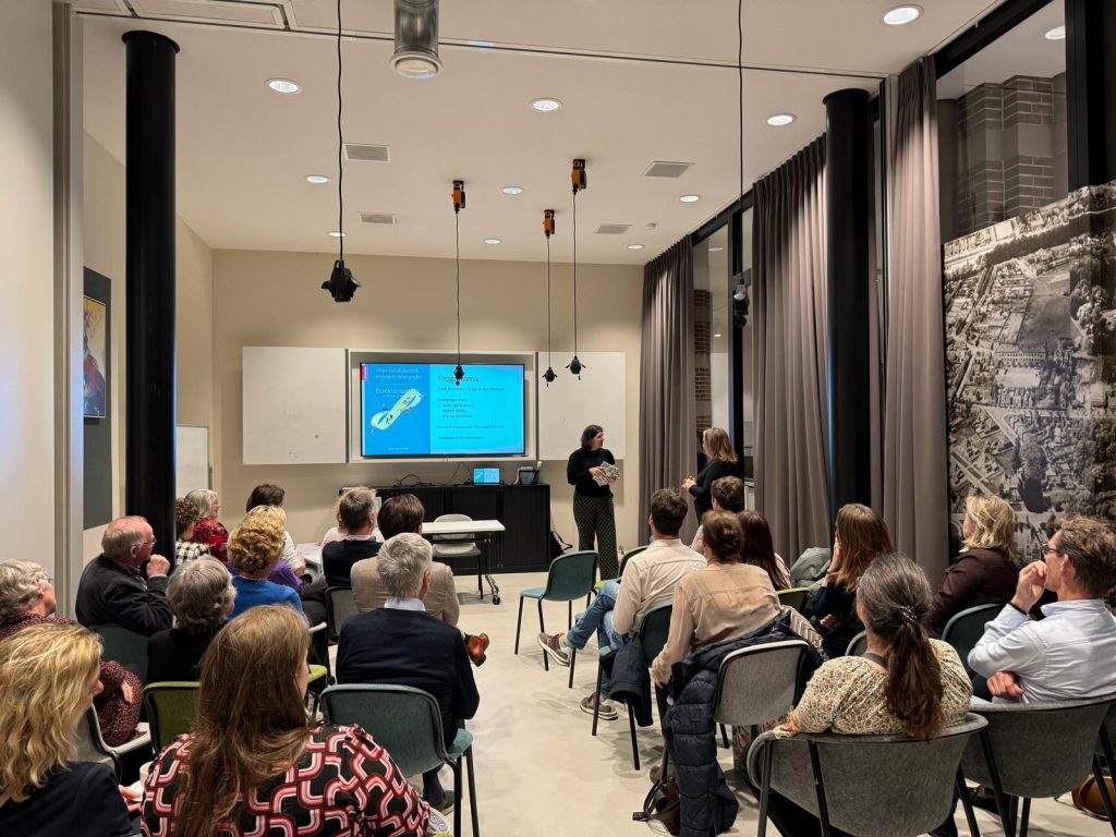 De avond werd geopend door drie inspirerende Pecha Kucha’s van Irene van Stiphout, Alderic Weijs en Marike Verschoor. Samen vertegenwoordigden zij het basisonderwijs, voortgezet onderwijs en mbo. En de lerarenopleiding, uitgeverij en lespraktijk. Daarna liet ik het publiek van de verhaallijn van het boek proeven.
